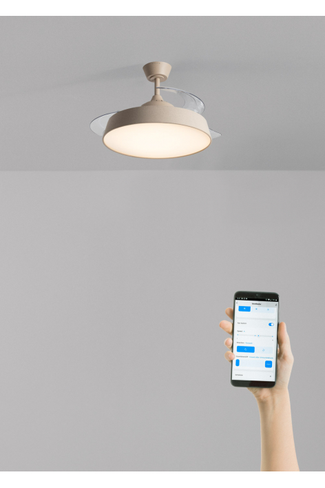 Ventoinha de teto silenciosa com pás retráteis e motor DC Brushless de 40 W que garante uma maior vida útil. Incorpora 6 velocidades, função verão/inverno e luz LED integrada com 3 temperaturas de cor. É programável até 4 horas e pode escolher o tipo de controlo que prefere: com o controlador de parede ou a partir do seu telemóvel com a app Create se escolher a ventoinha com WiFi.