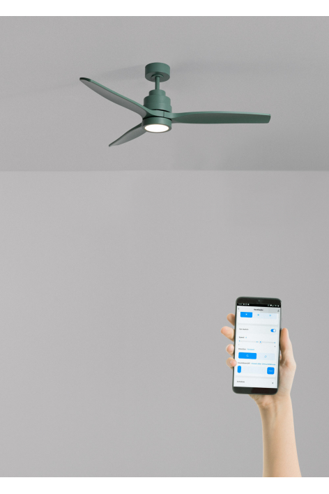 Ventoinha de teto silenciosa com motor DC 40 W, função verão/inverno e 6 velocidades. Tem um temporizador programável até 4h. Pode escolher entre a opção com luz LED com 3 temperaturas ou a opção sem luz. Também pode escolher o modelo com Wi-Fi para a controlar a partir do telemóvel com a aplicação Create ou, pelo contrário, escolher a combinação com um controlador de parede. Além disso, inclui dois tamanhos de haste para regular a altura do ventilador.