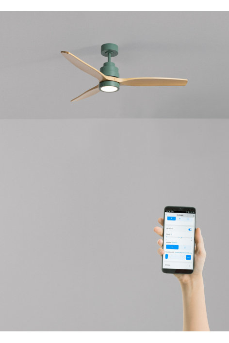 Cor do ventilador:Sálvia / Efeito madeira clara