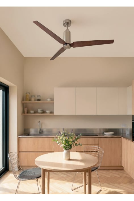 Ventoinha de teto silenciosa com motor DC Brushless de 45 W e 6 velocidades. A sua haste longa e ajustável torna-a perfeita para divisões com tetos altos, permitindo instalá-la à altura ideal para uma circulação de ar ótima. Além disso, conta com uma luz ambiente superior que cria um ambiente quente e acolhedor. Inclui temporizador programável até 4 horas e função inverno/verão para conforto durante todo o ano.