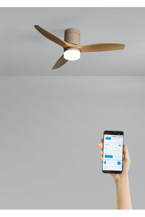 Silent ceiling fan with 40W DC motor, summer/winter function and 6 speeds. It has a programmable timer up to 4 hours. You can choose between the option with LED light with 3 temperatures or the option without light. You can also choose the Wi-Fi model to control it from your phone with the Create app.