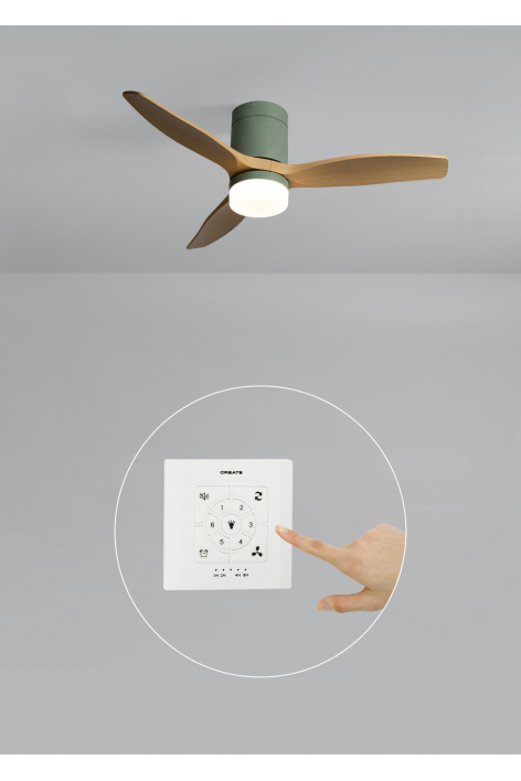 Silent ceiling fan with 40W DC motor, summer/winter function and 6 speeds. It has a programmable timer up to 4 hours. You can choose between the option with LED light with 3 temperatures or the option without light. You can also choose the Wi-Fi model to control it from your phone with the Create app.