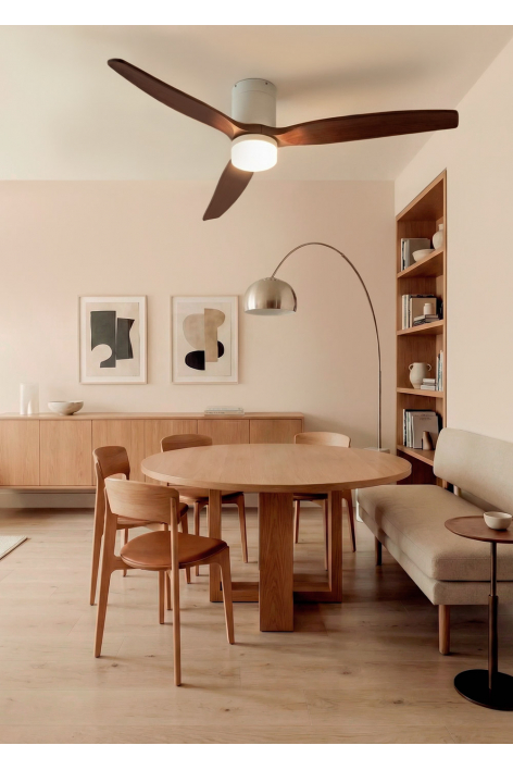 Silent ceiling fan with 40W DC motor, summer/winter function and 6 speeds. It has a programmable timer up to 4 hours. You can choose between the option with LED light with 3 temperatures or the option without light. You can also choose the Wi-Fi model to control it from your phone with the Create app.