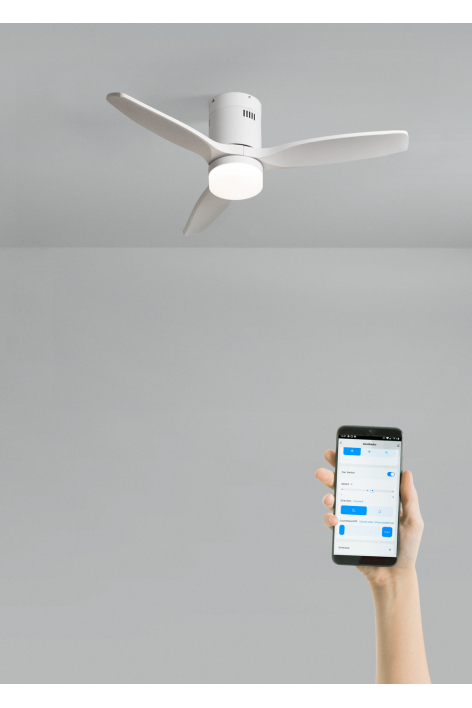 Silent ceiling fan with 40W DC motor, summer/winter function and 6 speeds. It has a programmable timer up to 4 hours. You can choose between the option with LED light with 3 temperatures or the option without light. You can also choose the Wi-Fi model to control it from your phone with the Create app, or choose the combination with a wall control.