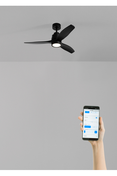 Silent ceiling fan with 40W DC motor, summer/winter function and 6 speeds. It has a programmable timer up to 4 hours. You can choose between the option with LED light with 3 temperatures or the option without light. You can also choose the Wi-Fi model to control it from your phone with the Create app, or choose the combination with a wall control. In addition, it includes two rod sizes to adjust the height of the fan.