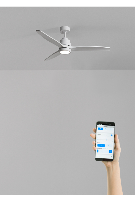 Silent ceiling fan with 40W DC motor, summer/winter function and 6 speeds. It has a programmable timer up to 4 hours. You can choose between the option with LED light with 3 temperatures or the option without light. You can also choose the Wi-Fi model to control it from your phone with the Create app, or choose the combination with a wall control. In addition, it includes two rod sizes to adjust the height of the fan.