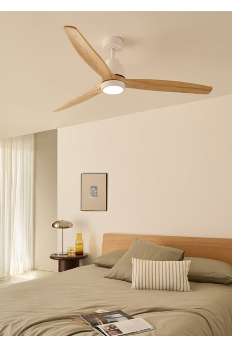 Silent ceiling fan with 40W DC motor, summer/winter function and 6 speeds. It has a programmable timer up to 4 hours. You can choose between the option with LED light with 3 temperatures or the option without light. You can also choose the Wi-Fi model to control it from your phone with the Create app, or choose the combination with a wall control.