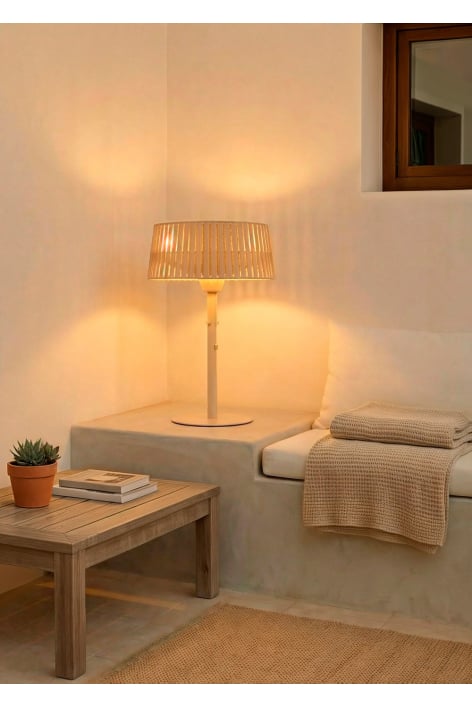 This 1500W outdoor heater combines a fast infrared–halogen heating system with a compact, easy-to-transport design. Its high-temperature-resistant rope and durable materials (steel, aluminum, glass and olefin rope) ensure safe and long-lasting use. It also features IP44 protection, guaranteeing water resistance. It is designed for safe use on any surface, thanks to its anti-tilt system that automatically stops operation in case of a fall. A complete and reliable solution to enjoy warmth outdoors safely and efficiently.