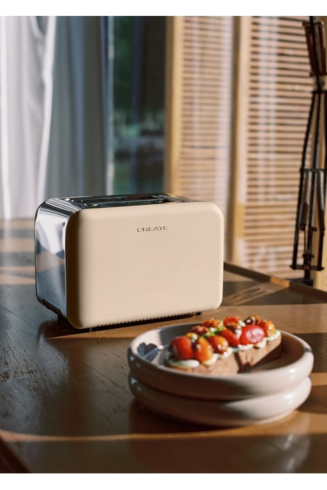 Retro-style bread toast with two wide slots. It's practical, safe and easy to use. It stands out for its retro design that adds an elegant touch to any kitchen. In addition, it has 6 toasting levels and non-slip feet.