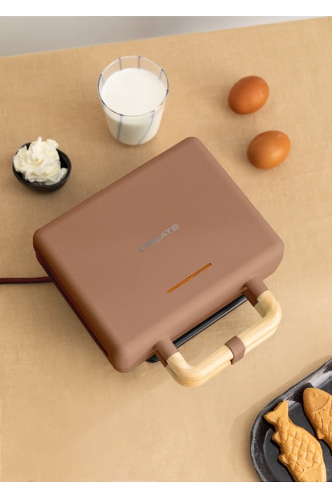 Sandwich grill and waffle maker with interchangeable non-stick plates. Its practical and compact design allows it to be stored vertically to take up less space. You can choose between two sizes and different colours. It's also lightweight, very easy to use and clean.